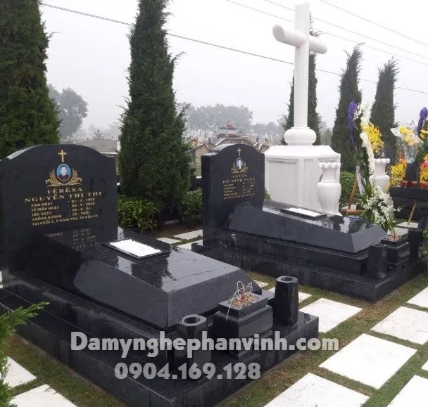 2. Mộ Công giáo đá xanh đôi