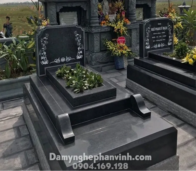 Mộ đá granite rất phù hợp phong thủy âm phần khi được thiết kế đúng kích thước Lỗ Ban, hướng đặt mộ và hoa văn mang ý nghĩa tâm linh như sen, chữ Thọ, hoa văn Phật giáo.