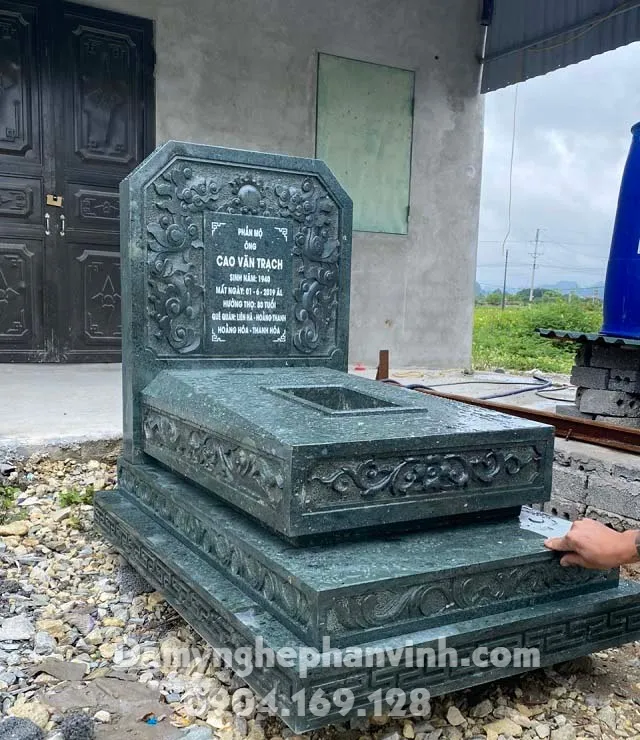 Mỗi công trình đều được chọn đá xanh rêu nguyên khối, chạm khắc thủ công bởi nghệ nhân làng nghề Ninh Bình, đảm bảo giá trị tâm linh – thẩm mỹ – phong thủy lâu dài cho con cháu đời sau. Phan Vinh cam kết: