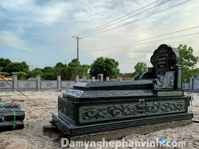 Giá mộ đá xanh rêu tại Ninh Bình phụ thuộc vào kích thước, độ dày đá, mức độ chạm khắc và vận chuyển: