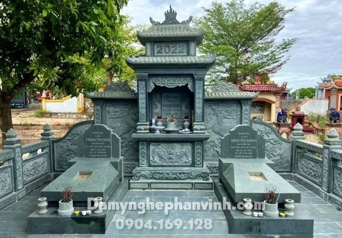 Mộ đá xanh rêu Ninh Bình là dòng mộ cao cấp được chế tác từ đá xanh rêu tự nhiên nguyên khối, nổi bật với màu sắc trầm cổ kính và độ bền vượt trội. Sản phẩm vừa đảm bảo tính thẩm mỹ, vừa mang ý nghĩa phong thủy sâu sắc, phù hợp với văn hóa tâm linh Việt. Tại Ninh Bình – cái nôi của làng nghề đá mỹ nghệ Ninh Vân, các mẫu mộ đá xanh rêu được gia công trực tiếp bởi nghệ nhân lâu năm, đảm bảo độ chính xác, tinh xảo và giá trị sử dụng lâu dài.