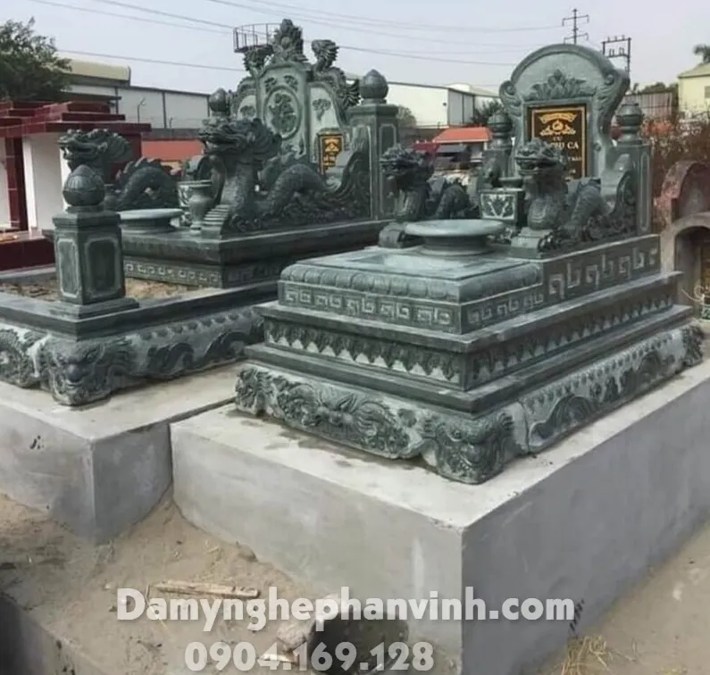 Mộ đôi bằng đá xanh rêu Thanh Hóa là lựa chọn phù hợp nhờ màu sắc đồng đều, độ bền cao và ý nghĩa gắn kết vĩnh cửu. Chất liệu đá giúp mộ đôi giữ được vẻ trang nghiêm, dễ thiết kế đối xứng và phù hợp phong thủy lâu dài.